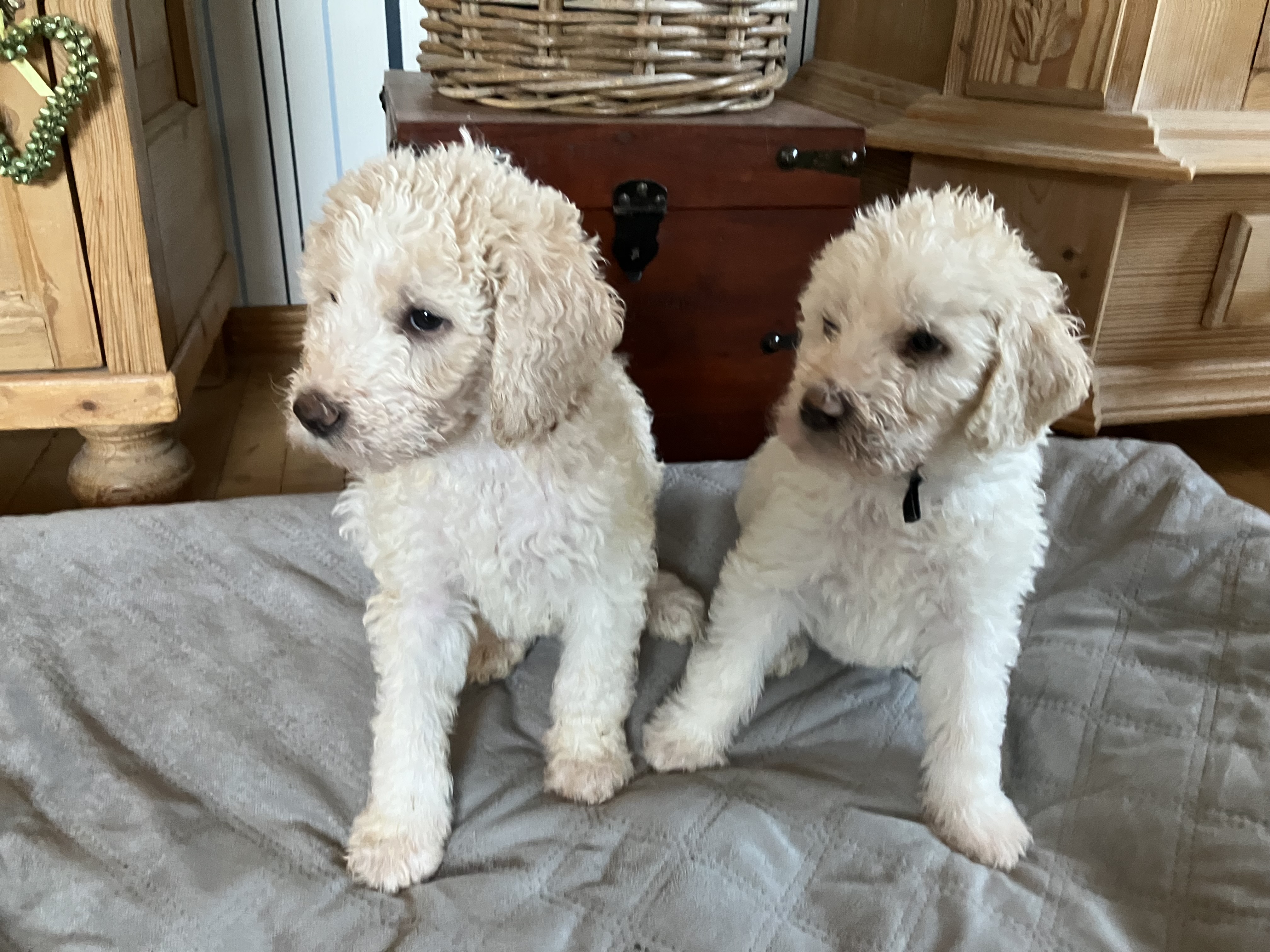 Durch den großen Pudelanteil werden die Welpen voraussichtlich nicht haaren.