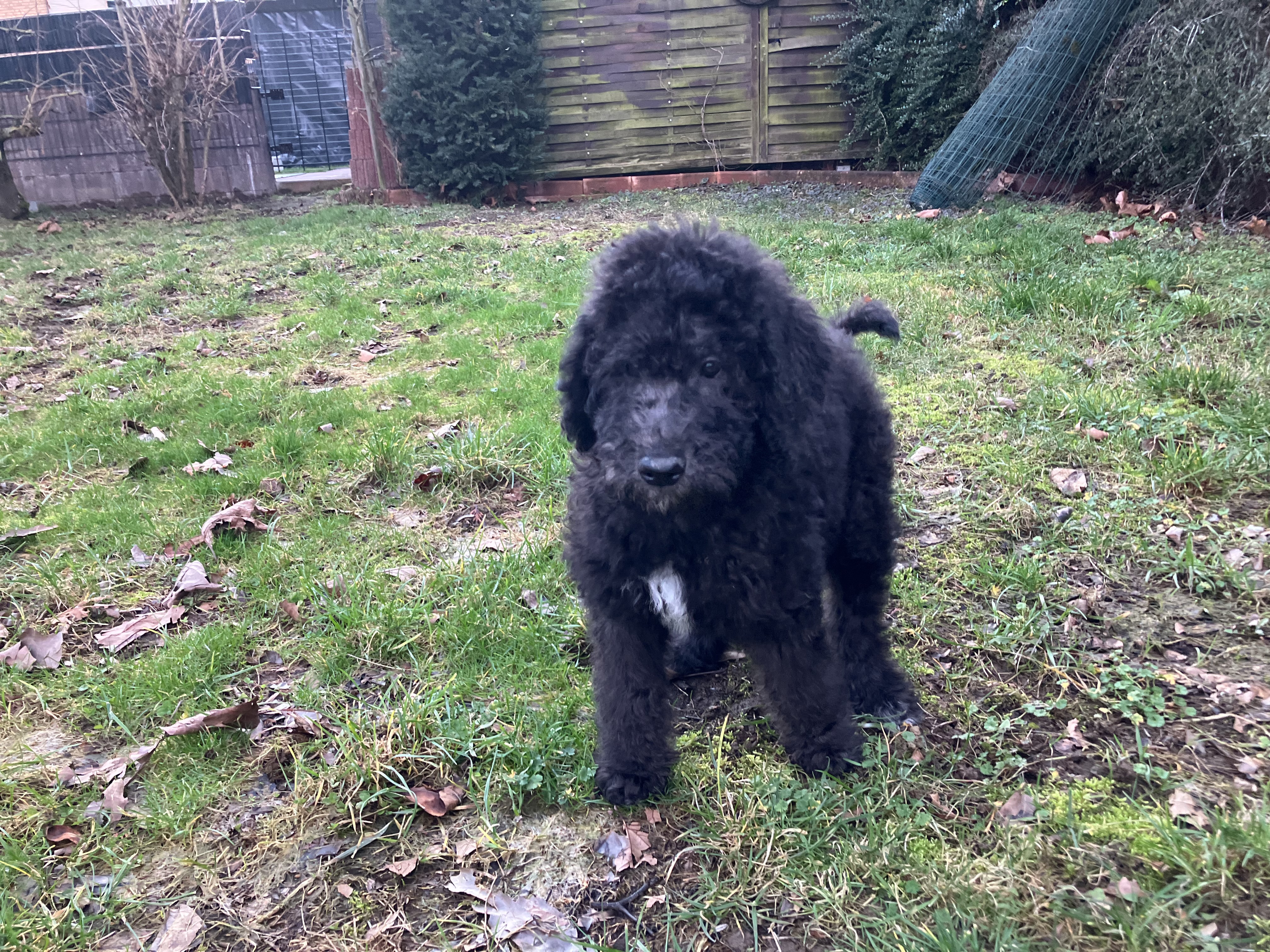 Durch den großen Pudelanteil werden die Welpen voraussichtlich nicht haaren.